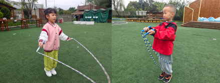孩子们对跳绳有的充满期待,有的自信满满,也有的担心害怕……对于大班的孩子来说,跳绳是一项具有挑战性的运动,是包含了上肢、下肢的全身运动,也包括了跳、甩、握等基本动作。于是,我们的跳绳挑战也就开始了。